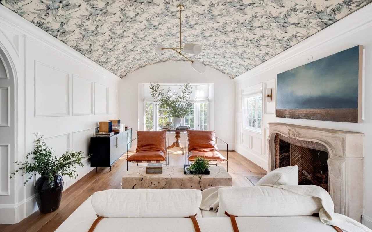 A patterned ceiling adds height, drama, and that “wait, what’s going on here and why do I love it?” feeling.