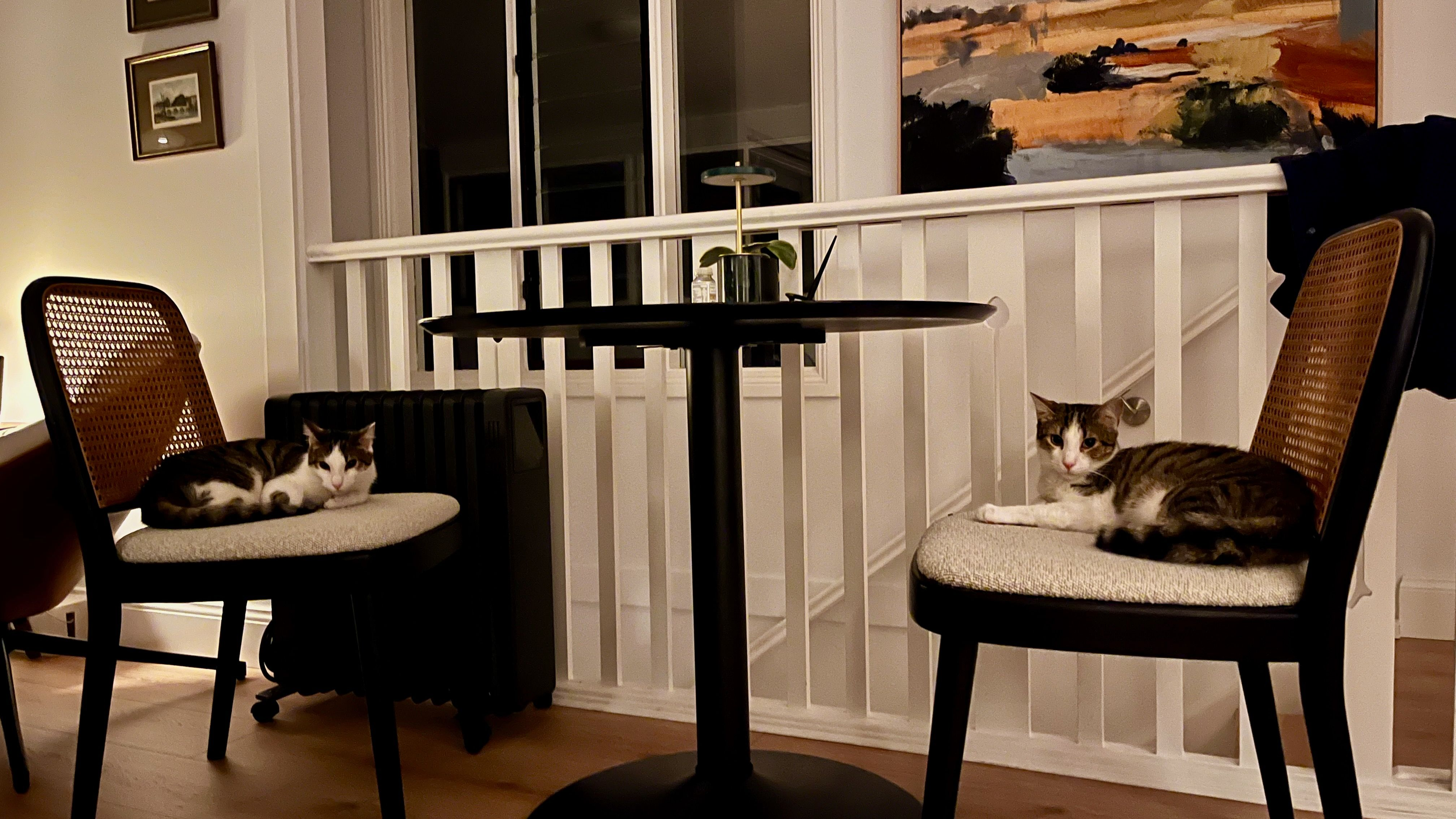 Since Timmy and Tommy joined the family, evenings now include a cat ritual.